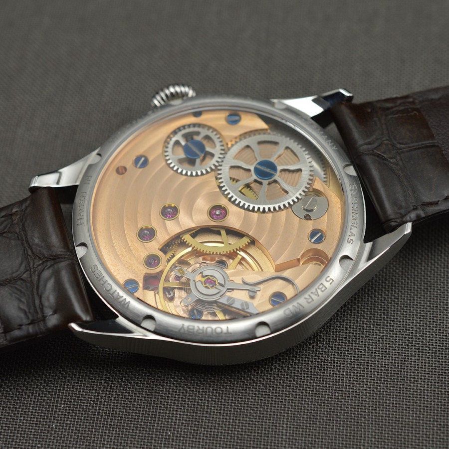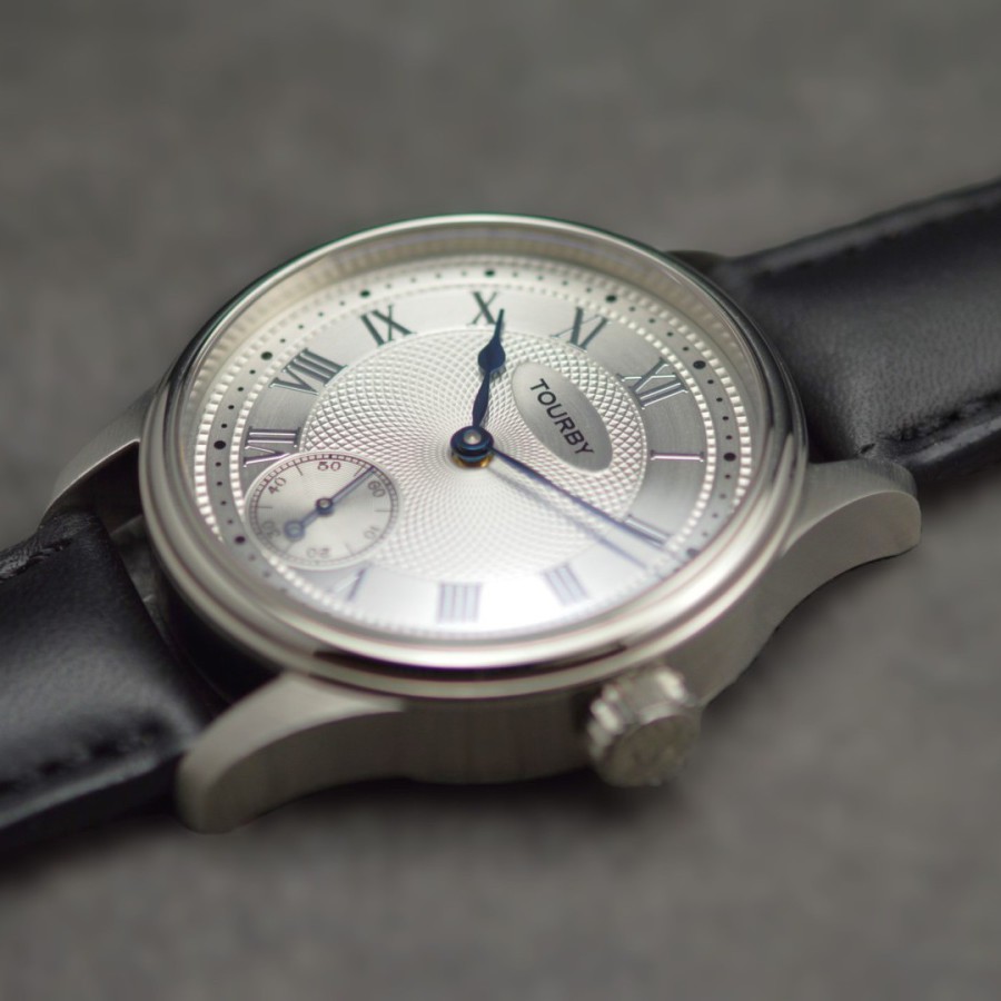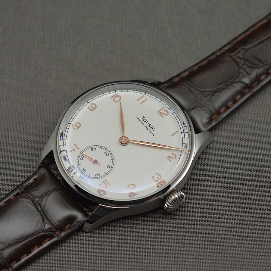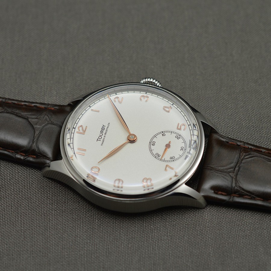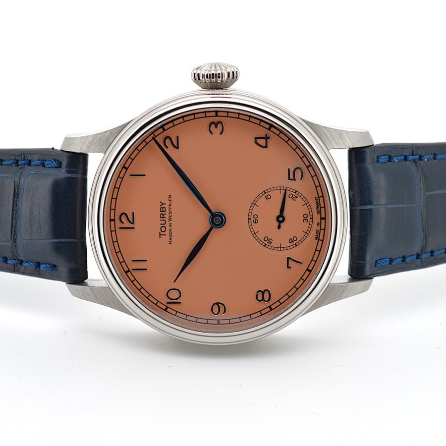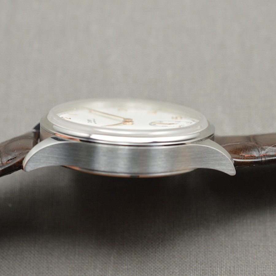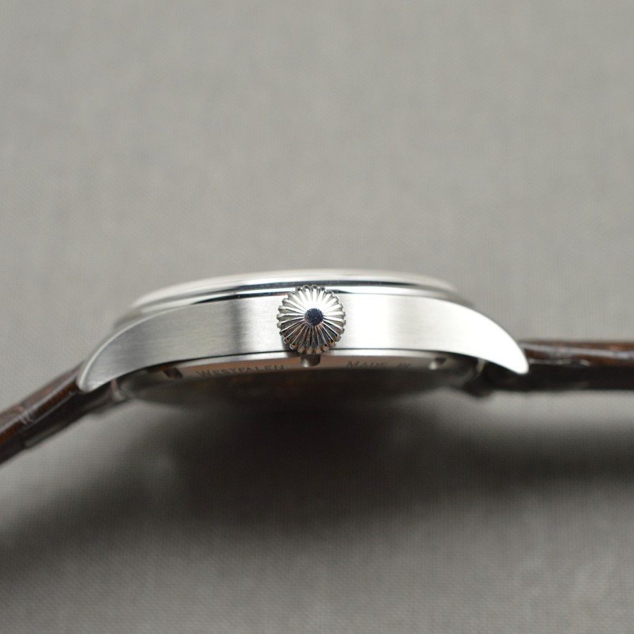 40.5 mm diameter, 10.6 mm height overall, 48 mm lug to lug,, 50 m WR, new (unworn), Stainless steel, Domed (box) sapphire front crystal, Sapphire case back, 925/000 Sterling Silver dial, Heat-blued steel hands, Handwound movement, Swiss Made ETA 6498-1 Premium Rose, 18.000 A/h, 48 hours power reserve, Adjusted in 5 positions, Genuine Leather strap, Tang buckle