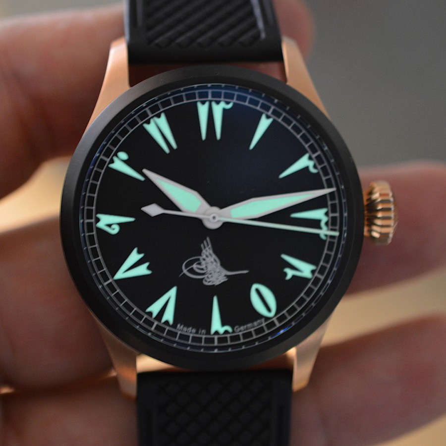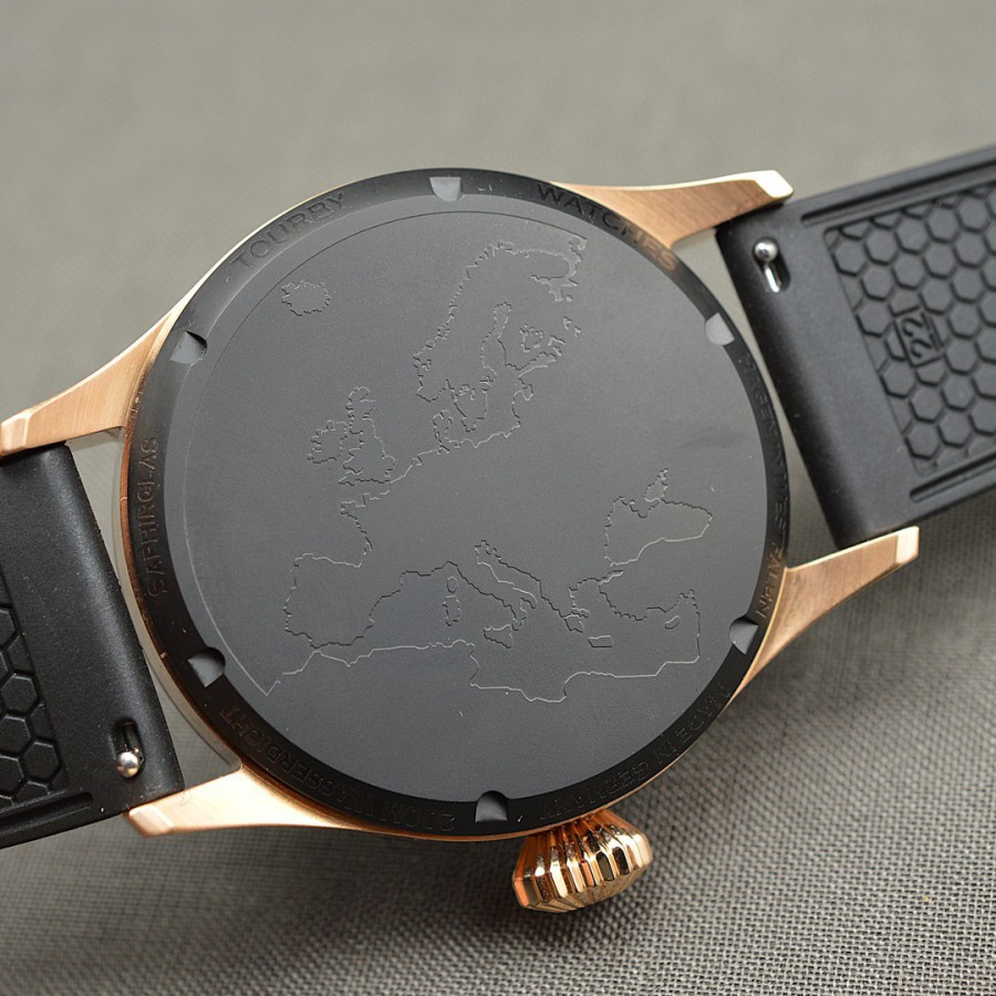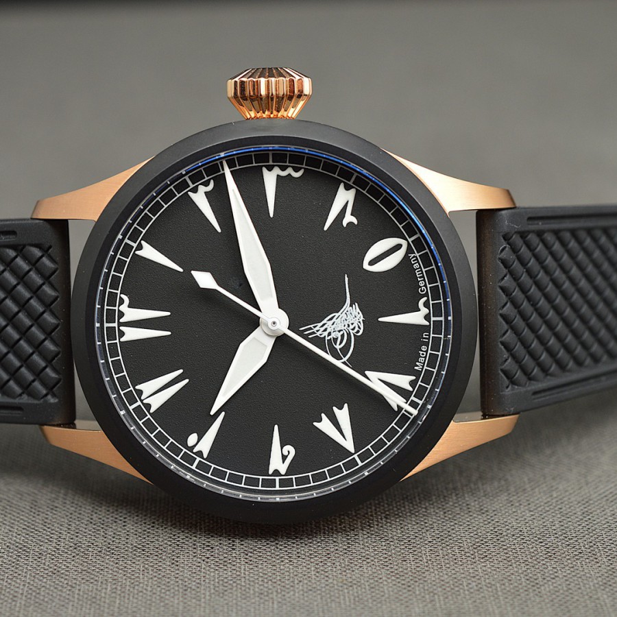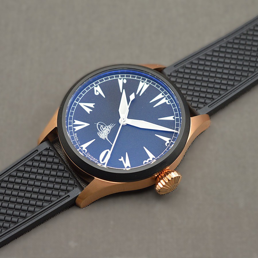 42 mm diameter, 11.5 mm height overall, 52 mm lug to lug, 50 m WR, new (unworn), Stainless steel, Rose gold and black PVD plated, Sapphire crystal on front, Sapphire case back, Black dial, White hands, Super-Luminova C1 (white), Automatic movent, Swiss Made ETA 2824-2, 28.800 A/h, 36 hours power reserve, Adjusted in 5 positions, FKM rubber strap, Tang buckle