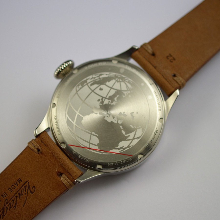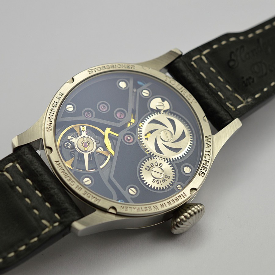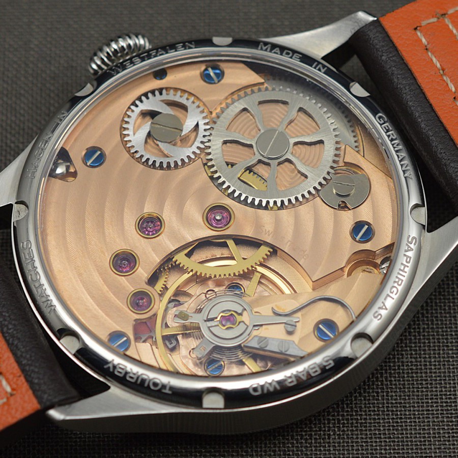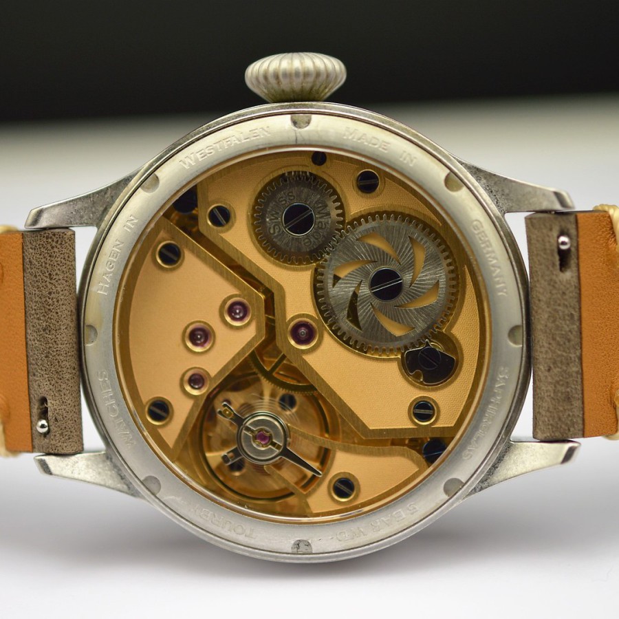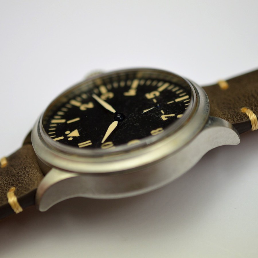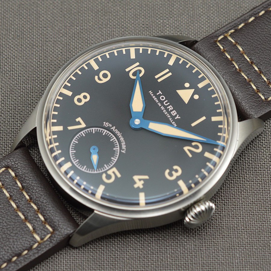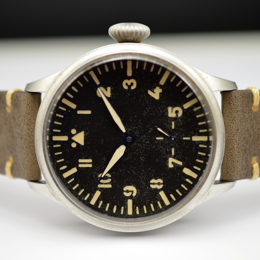 40.5 mm diameter, 10.6 mm height overall, 48 mm lug to lug,, 50 m WR, new (unworn), Stainless steel, Domed (box) sapphire front crystal, Sapphire case back, Black dial, Heat-blued steel hands, Super-Luminova OR, Handwound movement, Swiss Made ETA 6498-1 Premium Rose, 18.000 A/h, 48 hours power reserve, Adjusted in 5 positions, Genuine Leather strap, Tang buckle