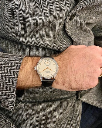 waistcoat pocket. It was not until 1940 that the wristwatch also became popular among men, but by then the small, angular design of wristwatches was already outdated. Wristwatches for men between